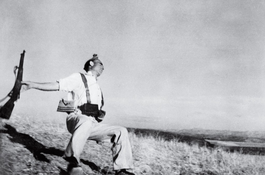 ‘Begon’ is het laatste woord van het verhaal: en inderdaad was het ‘telkens al afgelopen’, wat impliceert dat het ook telkens weer begint. Dat heeft grote consequenties voor de relatie tussen fabel en sujet: als het verhaal ‘telkens al afgelopen’ is, dan hebben we te maken met een eindeloos eindigend verhaal. Zoals de beroemde foto van Robert Capa, The Falling Soldier, waarin een soldaat dodelijk getroffen achterovervalt. In die foto is het sterven vereeuwigd: de soldaat is gestorven, maar blijft sterven.